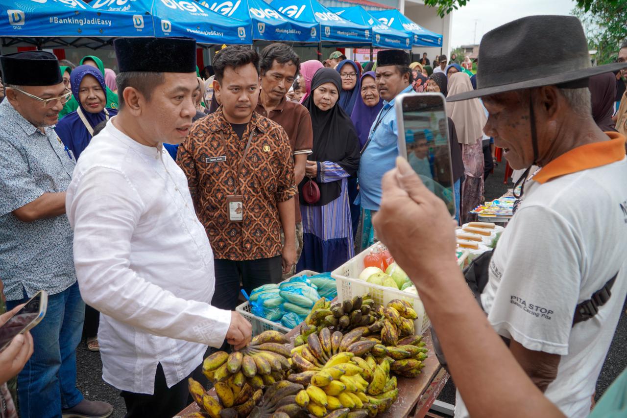 Kab. Karawang - Bupati Karawang, H Aep Syaepuloh SE menghadiri kegiatan bazar sembako murah yang diselenggarakan oleh Yayasan Pendidikan Dr. H.