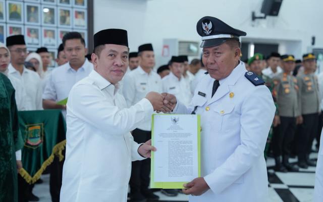 Kab. Karawang - Bupati Karawang, H. Aep Syaepuloh, SE resmi lantik 9 Kepala Desa terpilih hasil Pemilihan Kepala Desa (Pilkades) Serentak Berbasis Elektronik bertempat di Aula Husni Hamid, Senin (16/3/2026).