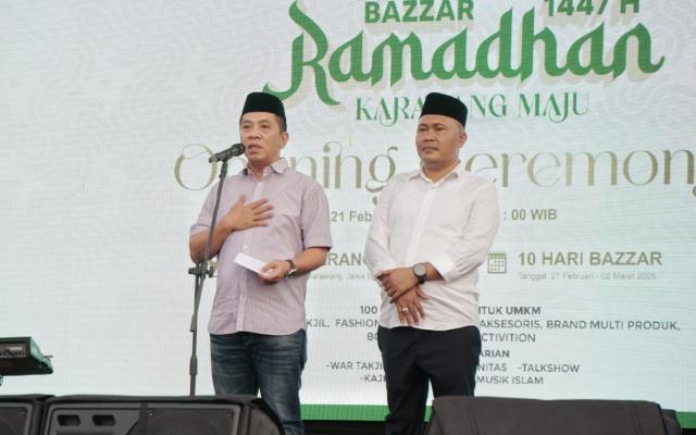 Kab. Karawang - Bupati dan Wakil Bupati Karawang H. Aep Syaepuloh dan H. Maslani membuka secara langsung Bazzar Ramadan Karawang Maju 1447 H/ 2026 M di Lapangan Karangpawitan, pada Sabtu (21/2/2026).