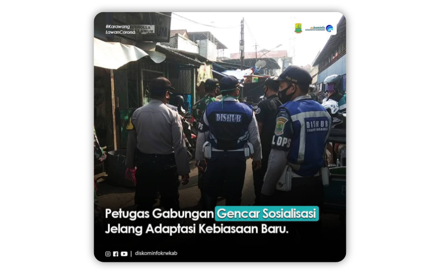 Karawang,- Dukung kebijakan pemerintah mengenai tahapan Adaptasi Kebiasaan Baru, Petugas Gabungan dari Dinas Perhubungan, Satpol PP, TNI Kodim 0604, dan anggota